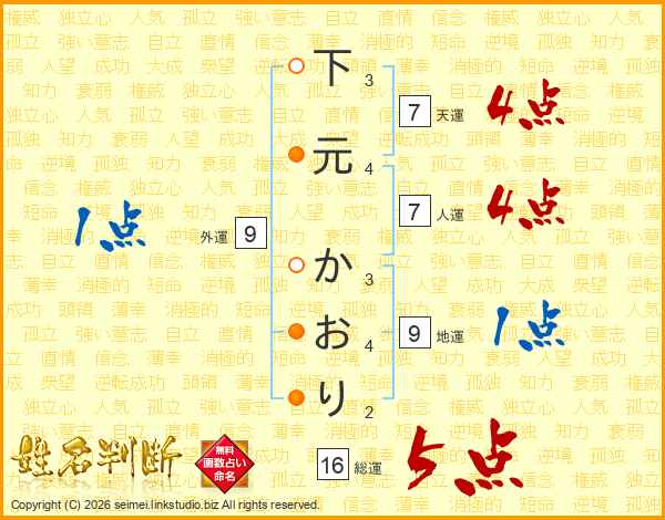 下(3画)元(4画) か(3画)お(4画)り(2画)