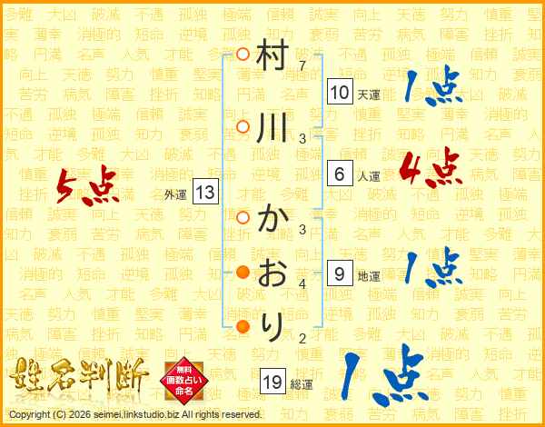 村川かおりさんの総運は19画の1点!