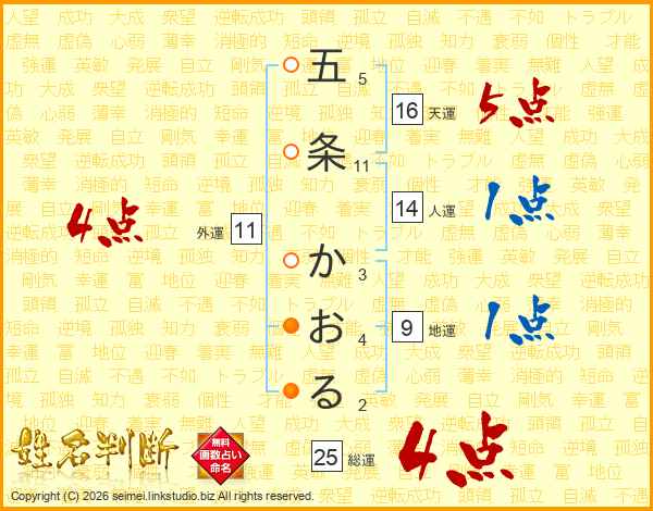 五条かおるさんの外運は11画の4点!
