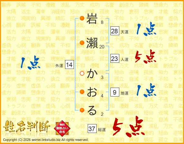 岩瀨かおるさんの総運は37画の5点!