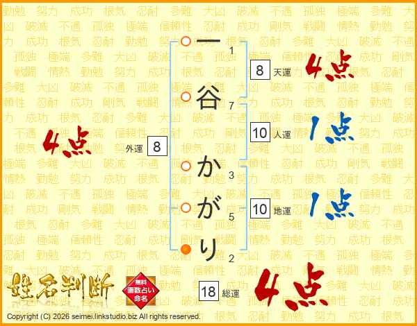 一谷かがりさんの総運は18画の4点!
