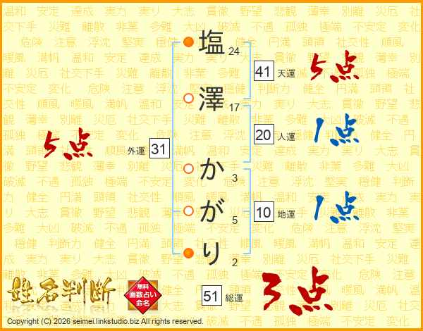 塩澤かがりさんの天運は41画の5点!