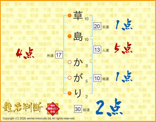 草島かがりさんの総運は30画の2点!