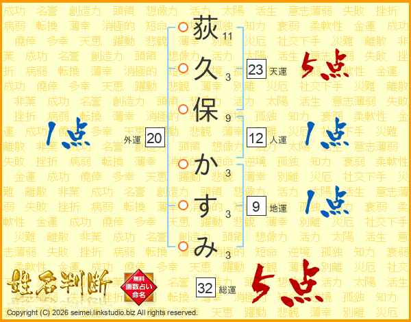 荻久保かすみさんの天運は23画の5点!