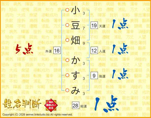 小(3画)豆(7画)畑(9画) か(3画)す(3画)み(3画)