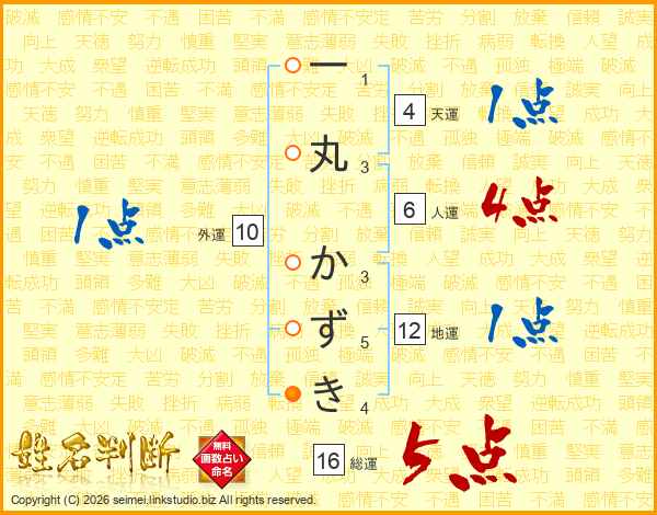 一(1画)丸(3画) か(3画)ず(5画)き(4画)