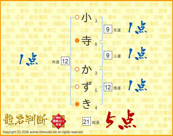 小寺かずきさんの総運は21画の5点!
