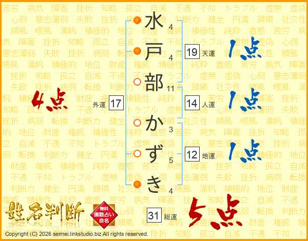 水戸部かずきさんの総運は31画の5点!