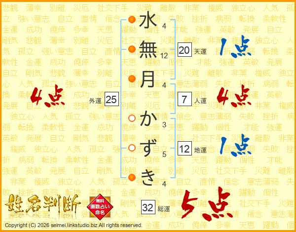 水無月かずきさんの総運は32画の5点!