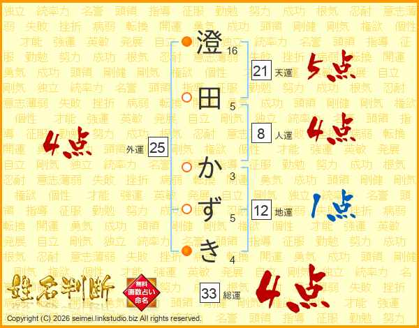 澄田かずきさんの総運は33画の4点!