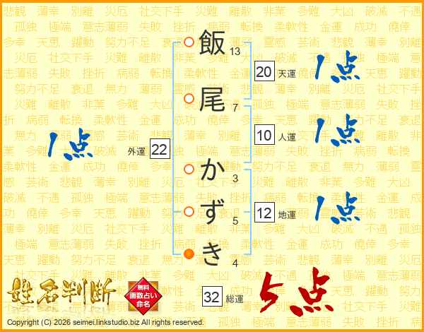 飯尾かずきさんの総運は32画の5点!