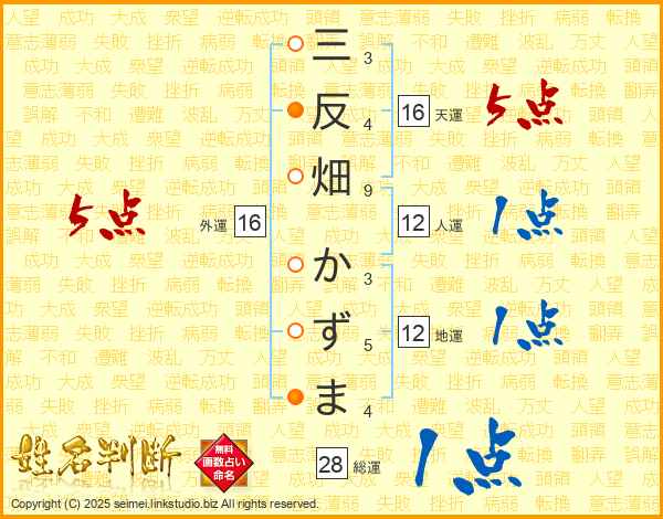 三反畑かずまさんの総運は28画の1点!