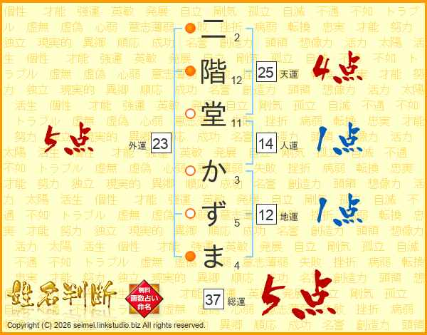 二階堂かずまさんの総運は37画の5点!