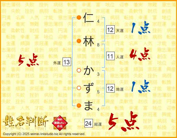 仁林かずまさんの総運は24画の5点!