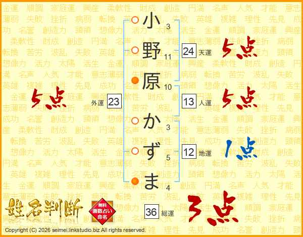 小野原かずまさんの総運は36画の3点!
