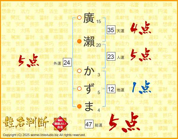 廣瀨かずまさんの総運は47画の5点!