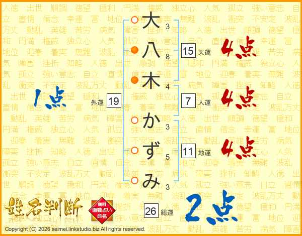大(3画)八(8画)木(4画) か(3画)ず(5画)み(3画)