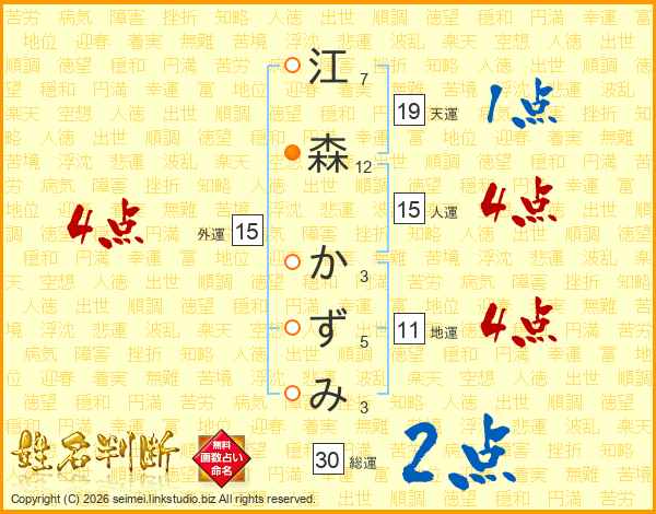 江森かずみさんの総運は30画の2点!