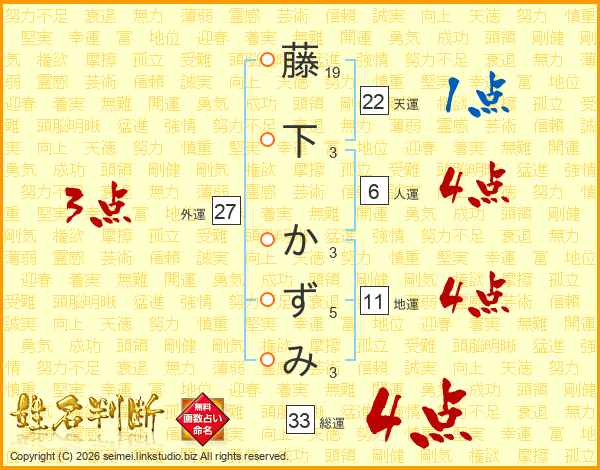 藤(19画)下(3画) か(3画)ず(5画)み(3画)