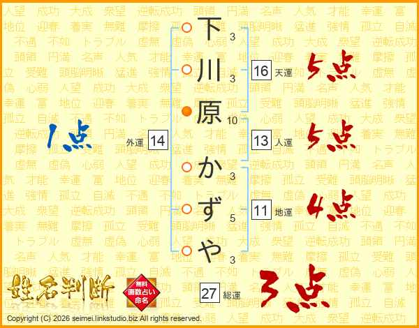 下川原かずやさんの総運は27画の3点!