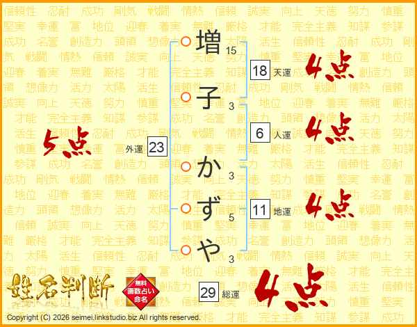 増子かずやさんの総運は29画の4点!