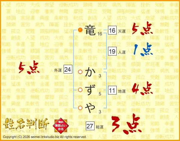 竜かずやさんの総運は27画の3点!
