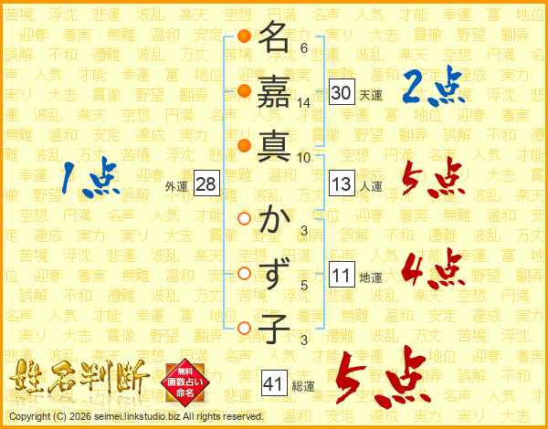 名嘉真かず子さんの総運は41画の5点!