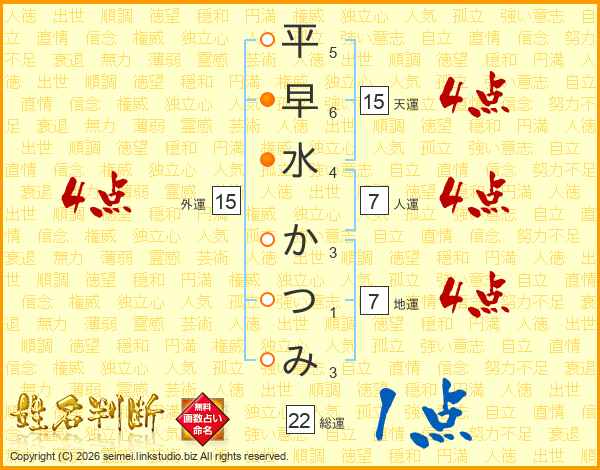 平早水かつみさんの総運は22画の1点!