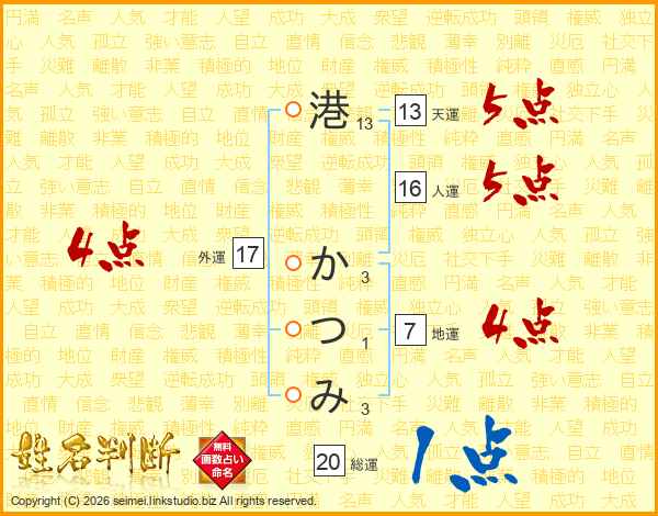 港かつみさんの天運は13画の5点!