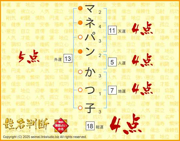 マネパンかつ子さんの総運は18画の4点!