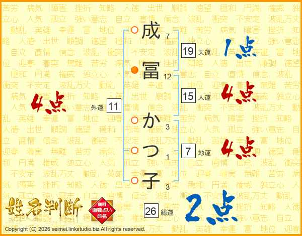 成冨かつ子さんの総運は26画の2点!