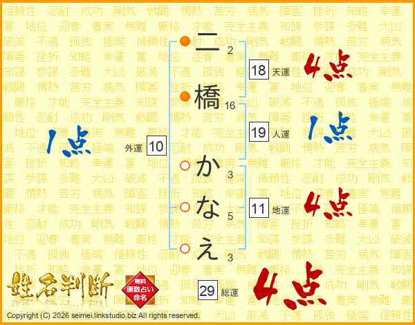二(2画)橋(16画) か(3画)な(5画)え(3画)
