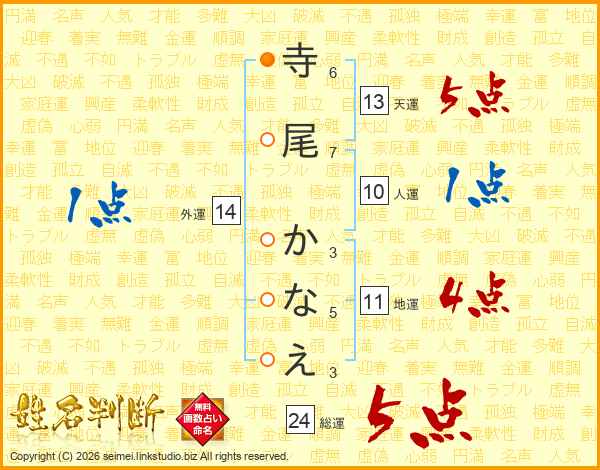 寺尾かなえさんの総運は24画の5点!