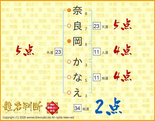 奈良岡かなえさんの総運は34画の2点!