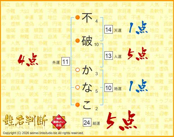 不破かなこさんの総運は24画の5点!
