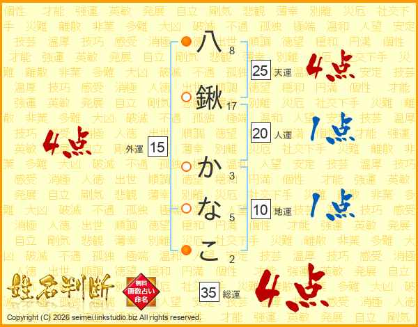 八鍬かなこさんの天運は25画の4点!