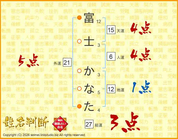 富士かなたさんの総運は27画の3点!