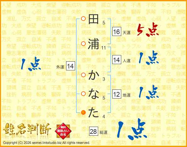 田浦かなたさんの総運は28画の1点!