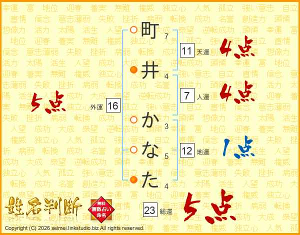 町井かなたさんの総運は23画の5点!