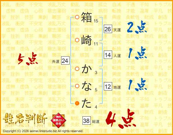 箱崎かなたさんの総運は38画の4点!