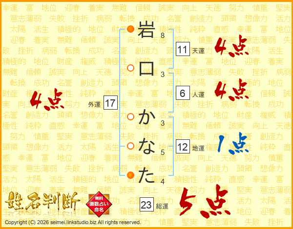 岩(8画)口(3画) か(3画)な(5画)た(4画)