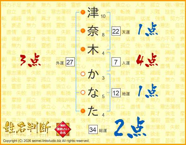 津奈木かなたさんの総運は34画の2点!