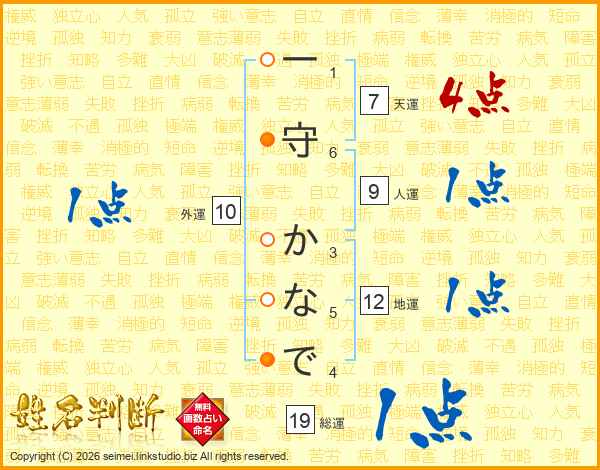 一守かなでさんの天運は7画の4点!