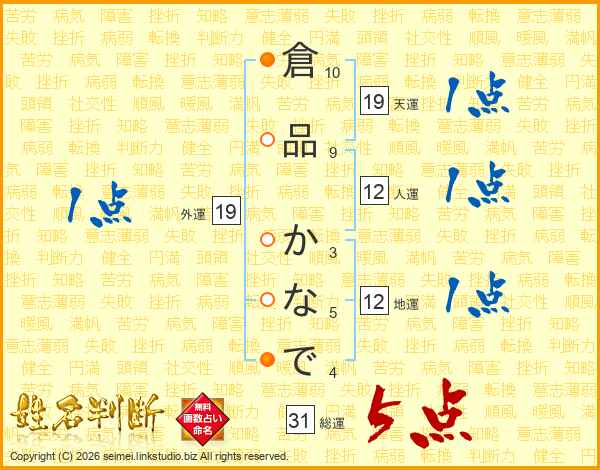 倉品かなでさんの総運は31画の5点!
