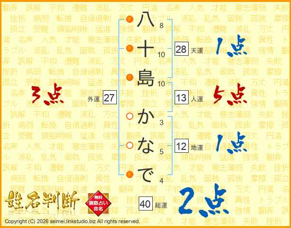 八十島かなでさんの総運は40画の2点!