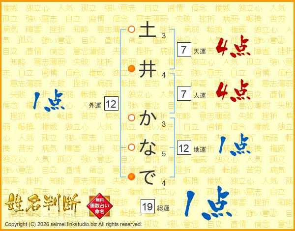 土井かなでさんの人運は7画の4点!