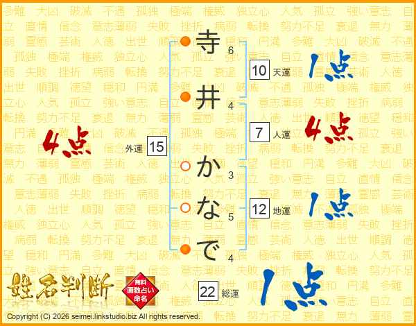 寺(6画)井(4画) か(3画)な(5画)で(4画)