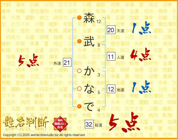 森武かなでさんの総運は32画の5点!