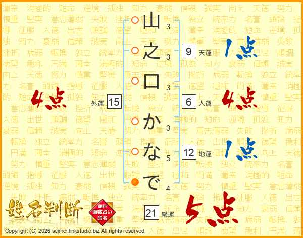 山之口かなでさんの外運は15画の4点!