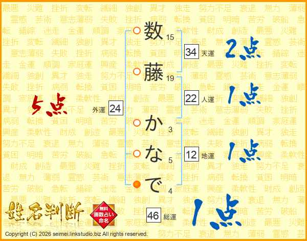 数(15画)藤(19画) か(3画)な(5画)で(4画)